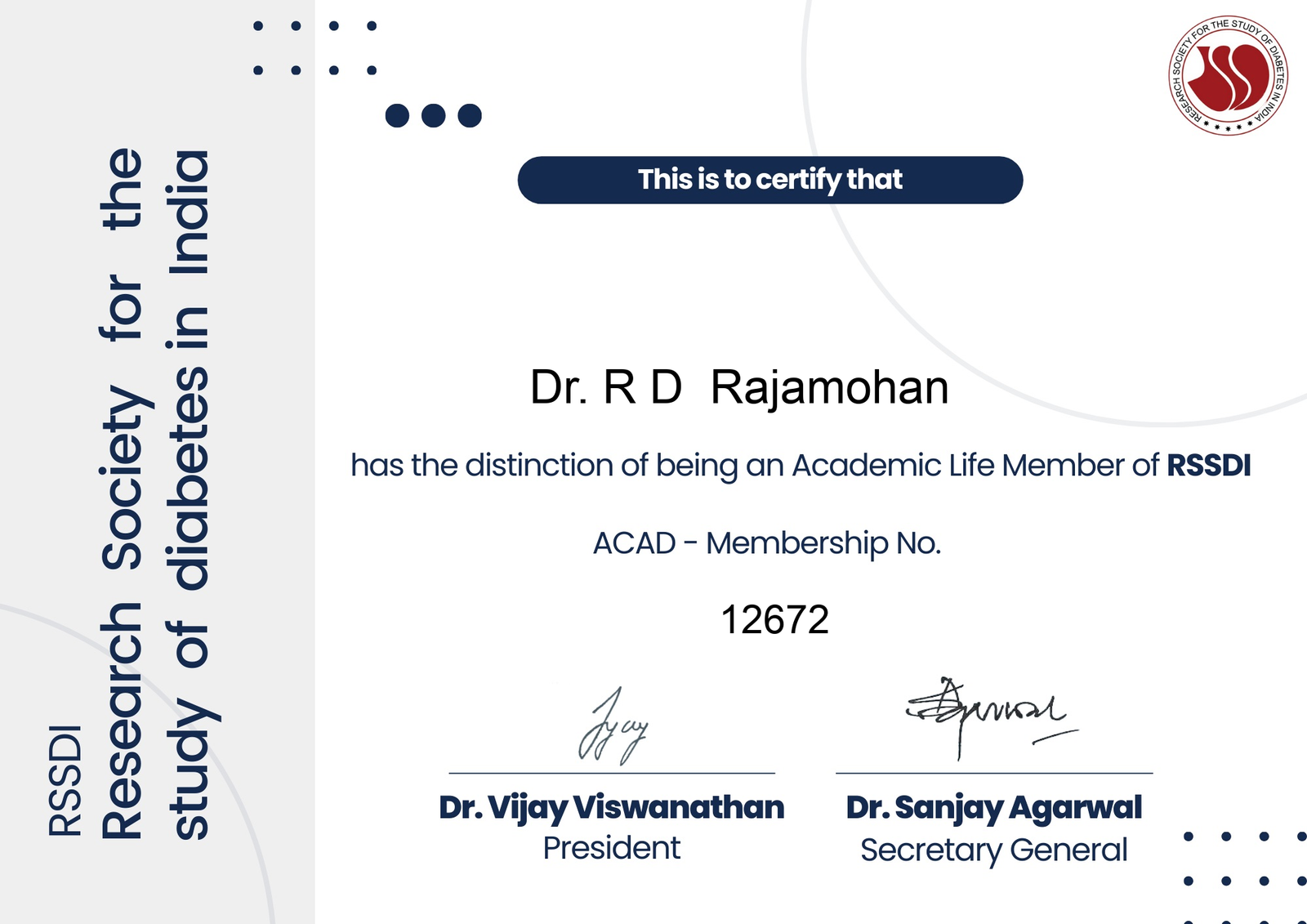 As a professional member, Dr. R. D. Rajamohan stays updated on the latest global advancements in diabetes treatment and management.